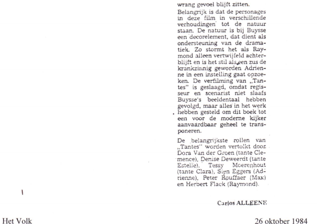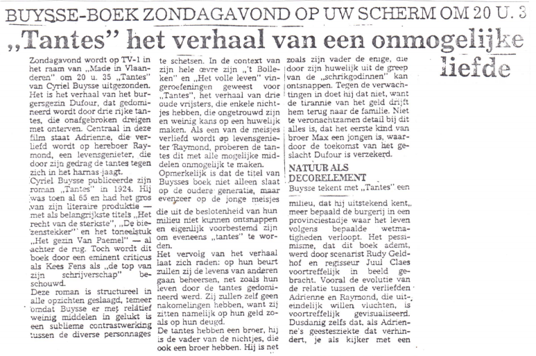Krantenartikel: Verfilming 'Tantes' van Cyriel Buysse